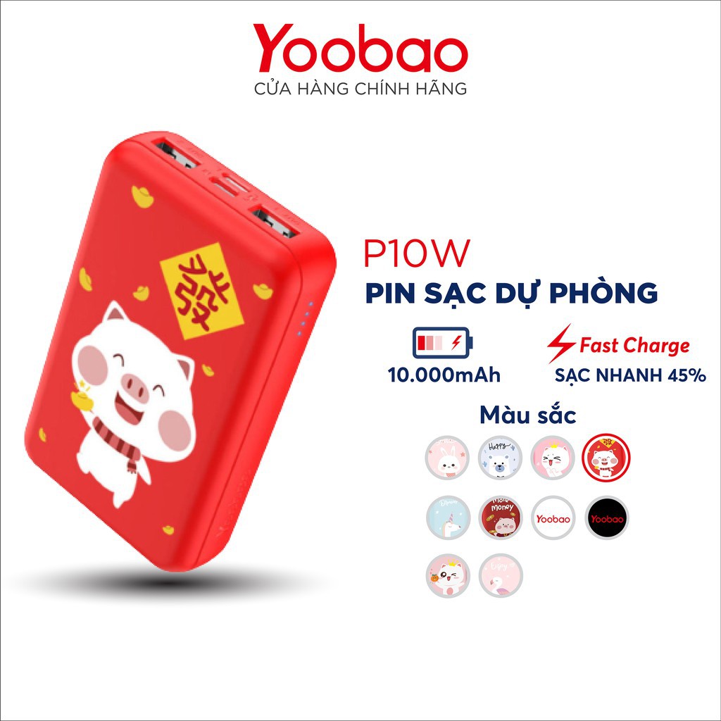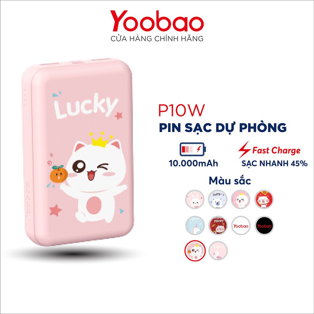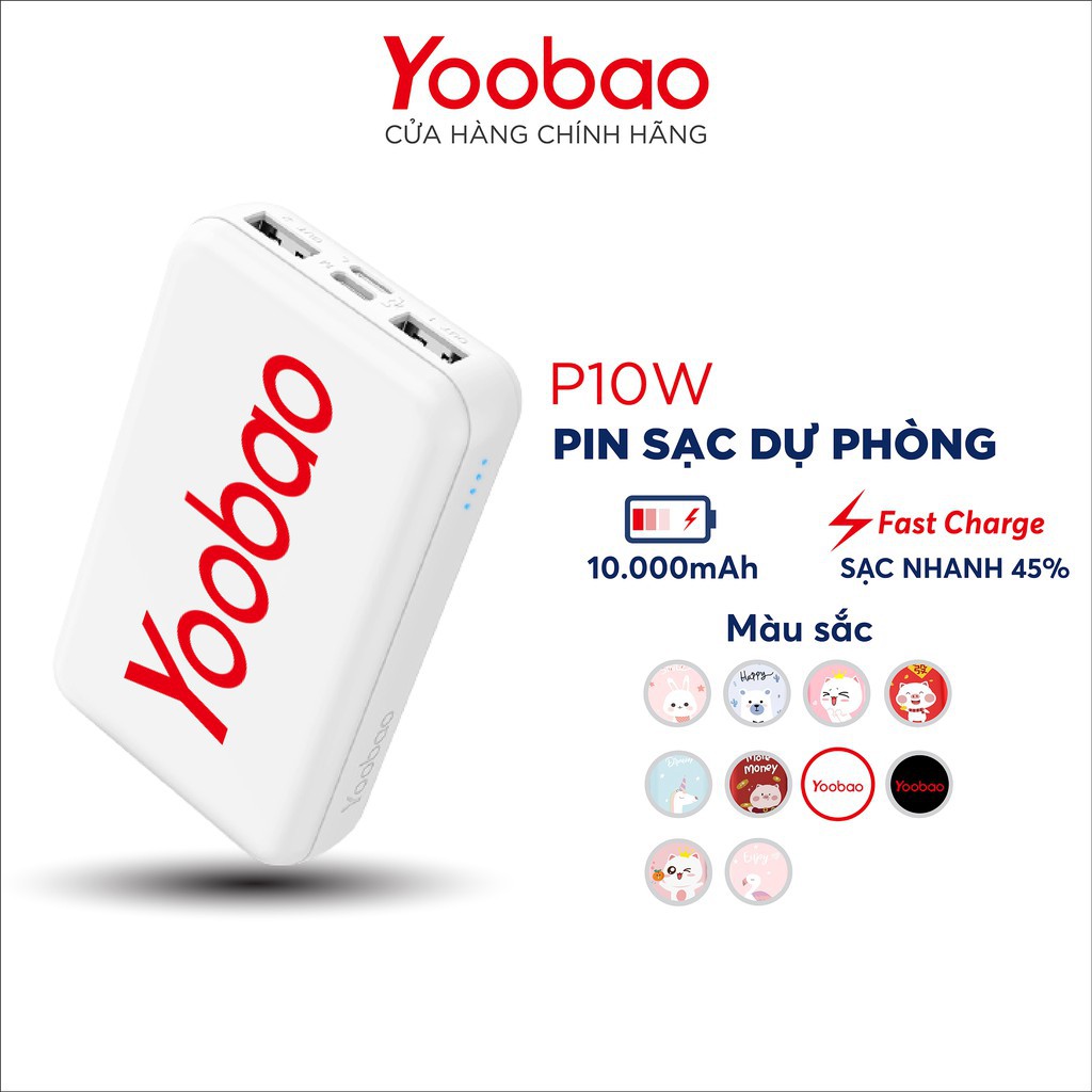 - Sạc dự phòng mini siêu mỏng Yoobao 10000mAh P10W thiết kế thời trang, dễ thương từ họa tiết đến màu sắc