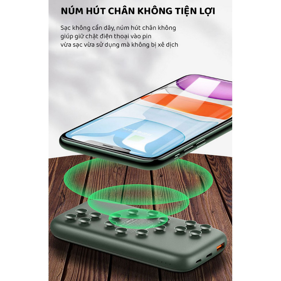 Pin sạc dự phòng núm hút chân không USAMS Suction Cup 10000mah sạc nhiều thiết bị cùng lúc