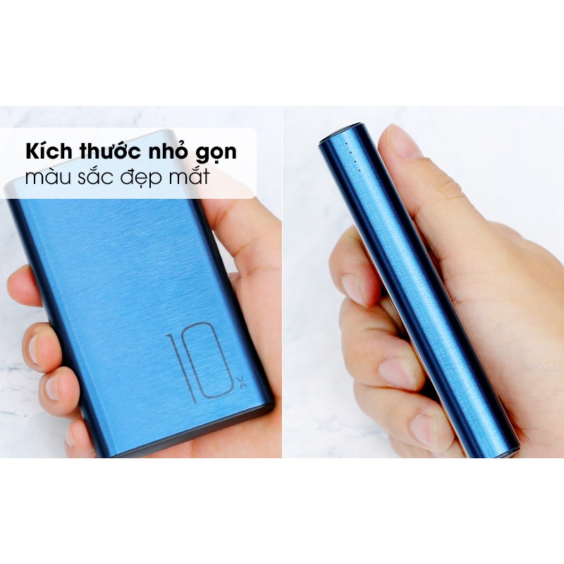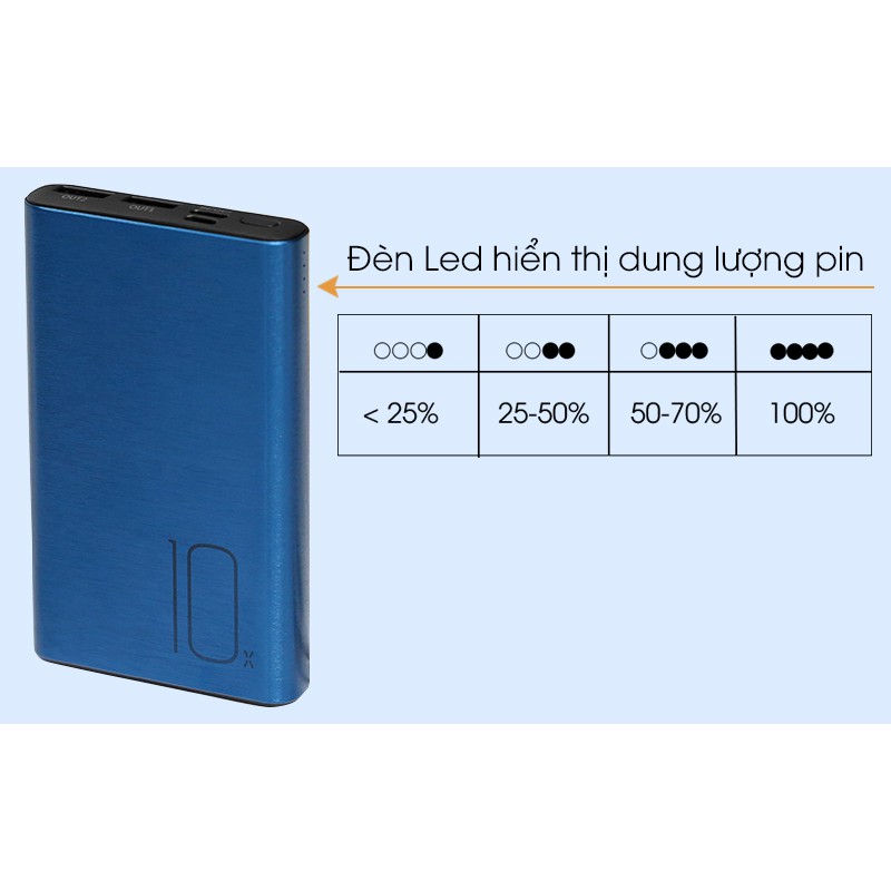 Dung lượng 10.000 mAh với hiệu suất sạc 65%.