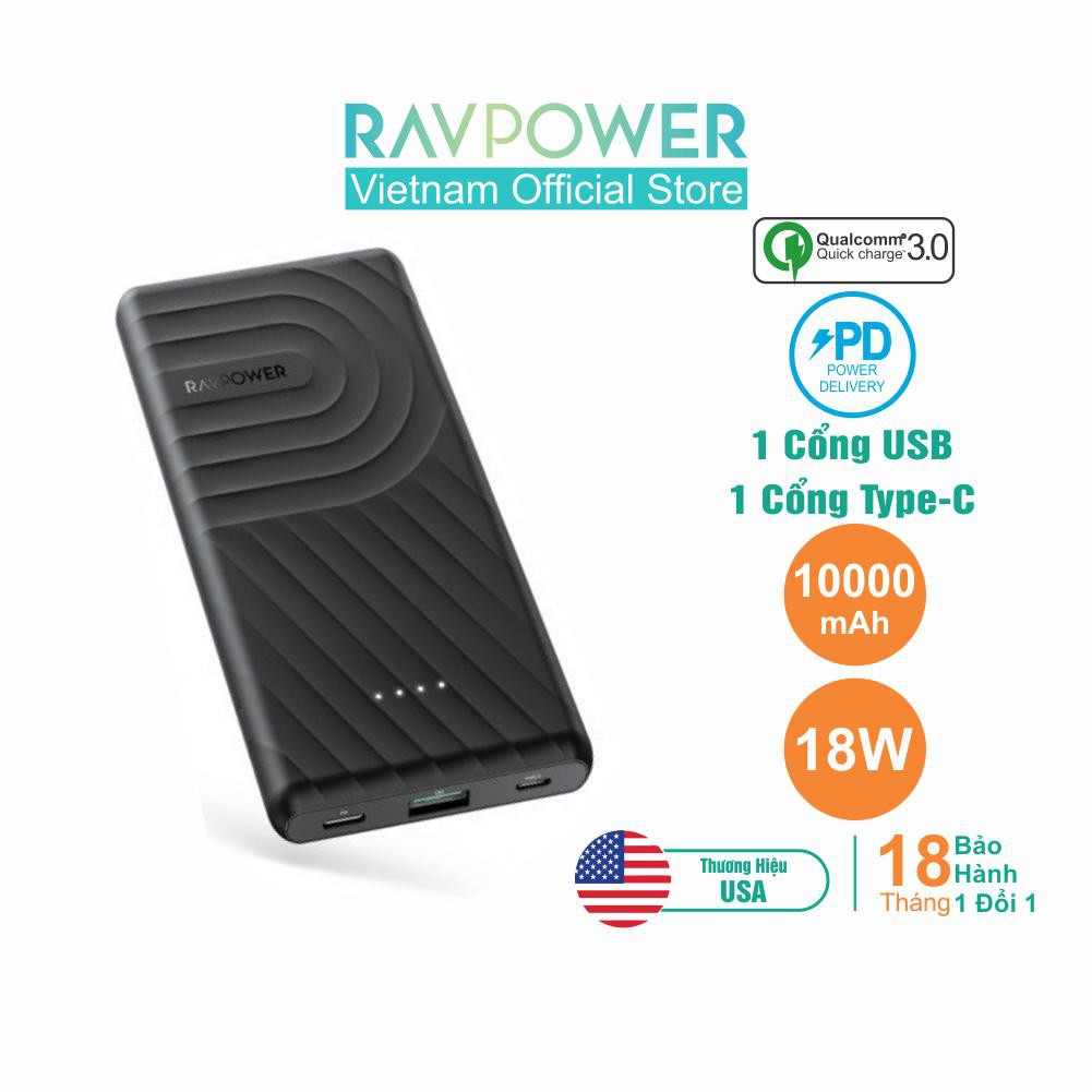 Pin Sạc Dự Phòng RAVPower RP-PB195 10000mAh In/Out Type-C QC 3.0 + PD 18W - Hàng Chính Hãng