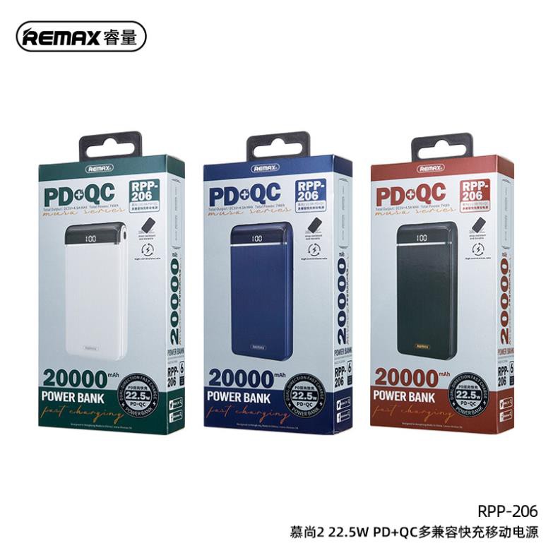 PIN SẠC DỰ PHÒNG REMAX RPP-206 - 20.000 MAH - 3 INPUT 3 OUTPUT - CÓ SẠC NHANH (PD250325)Shop Siêu Rẻ