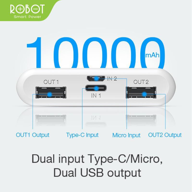 Pin Sạc Dự Phòng ROBOT 10.000mAh - 2 Output & 2 Input - RT170