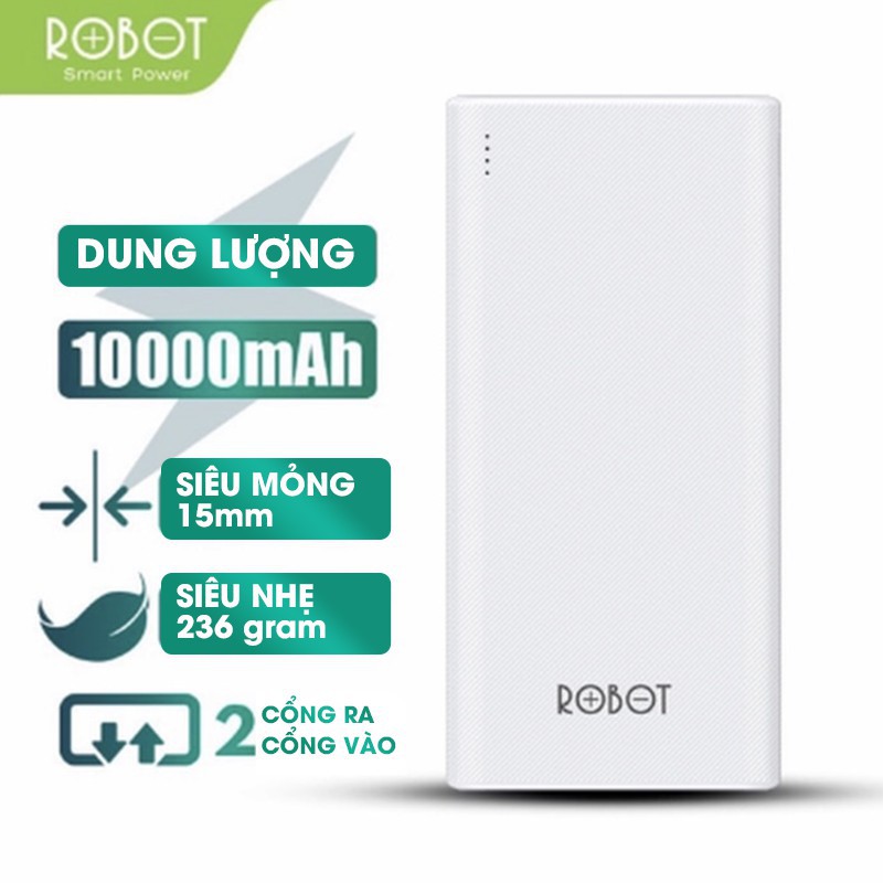 Điện Thoại & Phụ Kiện > Phụ kiện > Sạc dự phòng & Pin > Sạc dự phòng || Pin Sạc Dự Phòng ROBOT 10.000mAh - 2 Output & 2 Input - RT170Còn hàng
