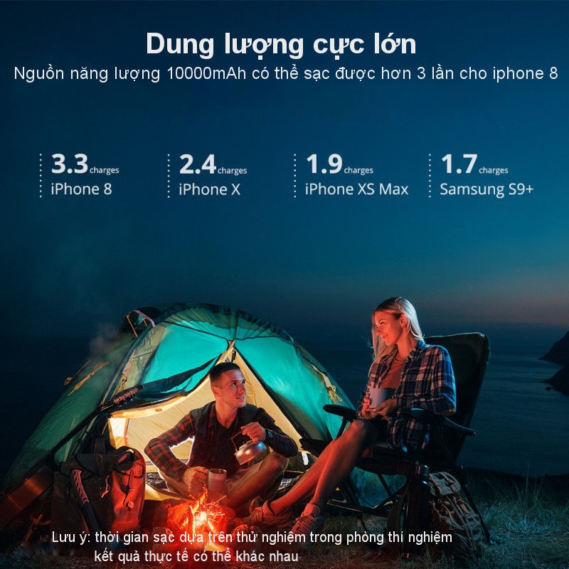 Nguồn năng lượng lớn 10000mAh có thể sạc điện thoại dung lượng loén lên đến ba lần.