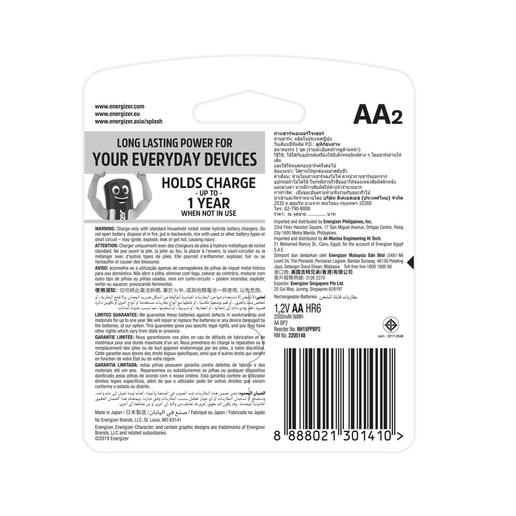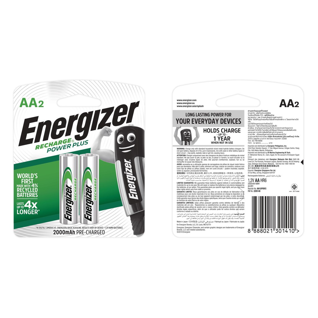 Tên sản phẩm: PIN SẠC ENERGIZER AA 2000mAhSố lượng: 2 viên.