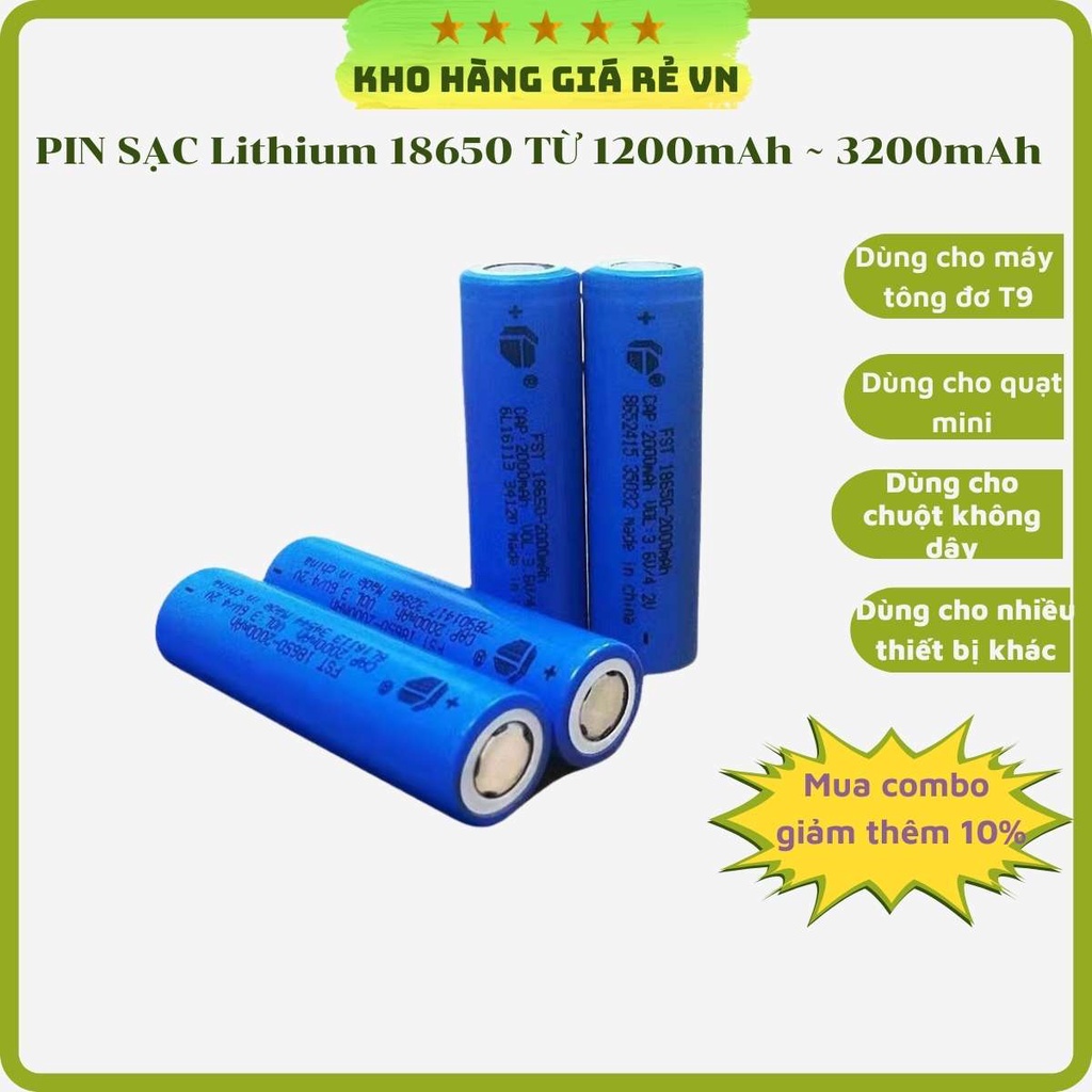 - Pin Sạc lithium-ion 3,7v Chính Hãng dung lượng định danh 1200mAh - 3200mAh ( nhà sản xuất đưa ra )