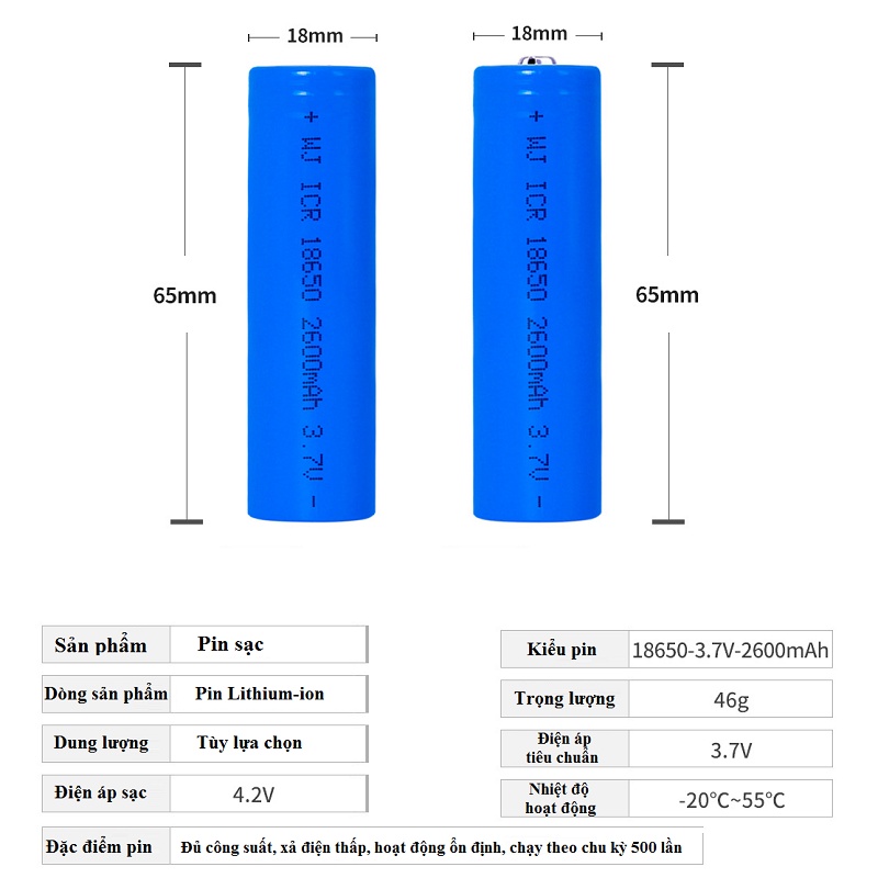 - Mã pin: 18650