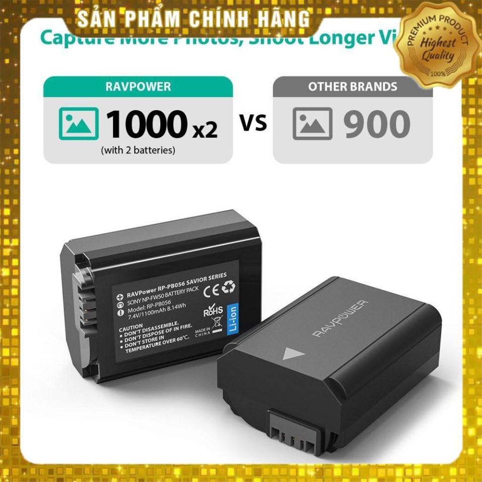 - Bộ pin sạc máy ảnh Sony NP FW50 1100 mAh RAVPower RP-PB056