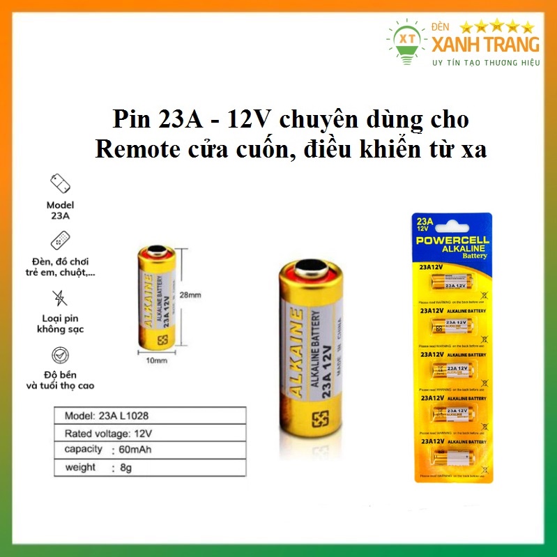 Giới thiệu Pin Tiểu 12V 23A Dùng Cho Remote RF, pin kiềm ALKALINE Điều Khiển Cửa Cuốn, quạt , Khóa Xe Máy, đồ chơi