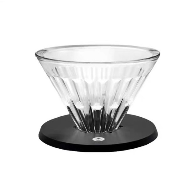 - Dụng cụ lọc cà phê Timemore V60 Crystal Eye Dripper 02: Phễu lọc được thiết kế với 3 tầng khác nhau, số lượng gân, rãnh hoàn toàn khác nhau với mục đích cụ thể: Tầng phẳng trên cùng: Hoàn toàn kín khi đặt giấy lọc vào. Cho dù bạn có rót nước thằng vào bề mặt giấy hay rót đầy thì lượng nước này không thấm qua phễu chảy xuống bình. Tầng nước nhiều gân: Giảm diện tích tiếp xúc giữa giấy và bề mặt phễu để điều tiết tốc độ dòng chảy. Dù bên trên nhiều hay ít nước thì tốc độ dòng chảy ra gần như ổn định. Tầng cà phê bột nhiều rãnh: Tăng khả năng thông thoáng cho nước chảy qua cà phê xuống bình đựng. Tránh tình trạng nghẽn nước.