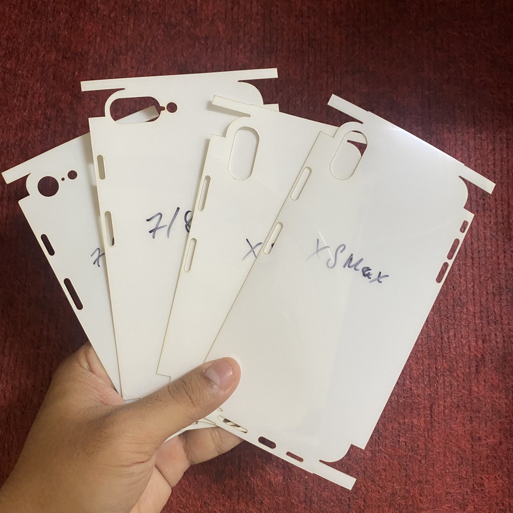 LƯU Ý: VIỀN MIẾNG DÁN SẼ CÓ MÀU HƠI NGẢ VÀNG LÀ DO LỚP VỎ BỊ CHÁY TRONG QUÁ TRÌNH CẮT LAZER, MIẾNG DÁN HOÀN TOÀN MỚI VÀ KHÔNG BỊ ẢNH HƯỞNG-Miếng dán PPF FULL toàn thân cho iphone 7/8/7p/8p/x/xs/xr/xsm có khả năng chống va đập nhẹ cho máy. Là loại film cao cấp chuyên bảo vệ lớp sơn siêu xe: không có keo, bóng đẹp, độ chống trầy xướt cao, rất bền và đặc biệt có khả năng tự phục hồi vết xướt nhẹ