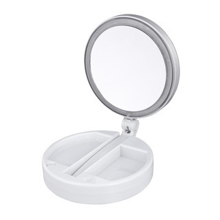 Gương trang điểm đèn led để bàn gấp gọn hình trònVới thiết kế hình tròn, là loại gương kính thật, hạn chế cầu lồi cho bạn hình ảnh chân thật nhất. Lớp kính tráng bạc 2 lớp dày dặn ít nứt vỡ tích hợp cùng với đèn led chiếu sáng ban đêm.