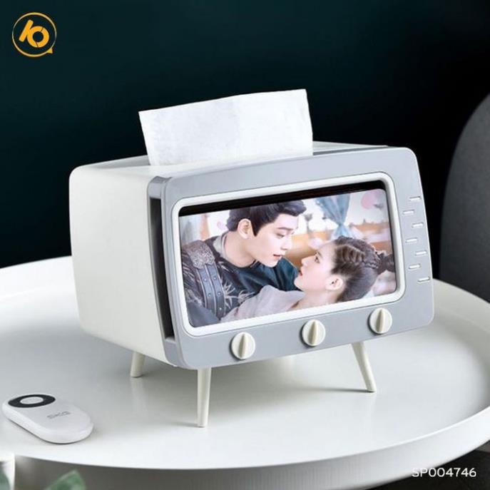Nhà cửa & Đời sống > Sắp xếp nhà cửa > Hộp khăn giấy || PVN17427 Hộp đựng giấy ăn cao cấp kèm giá đỡ điện thoại 2in1 phong cách Art Deco - hộp giấy hình tivi T2Còn hàng