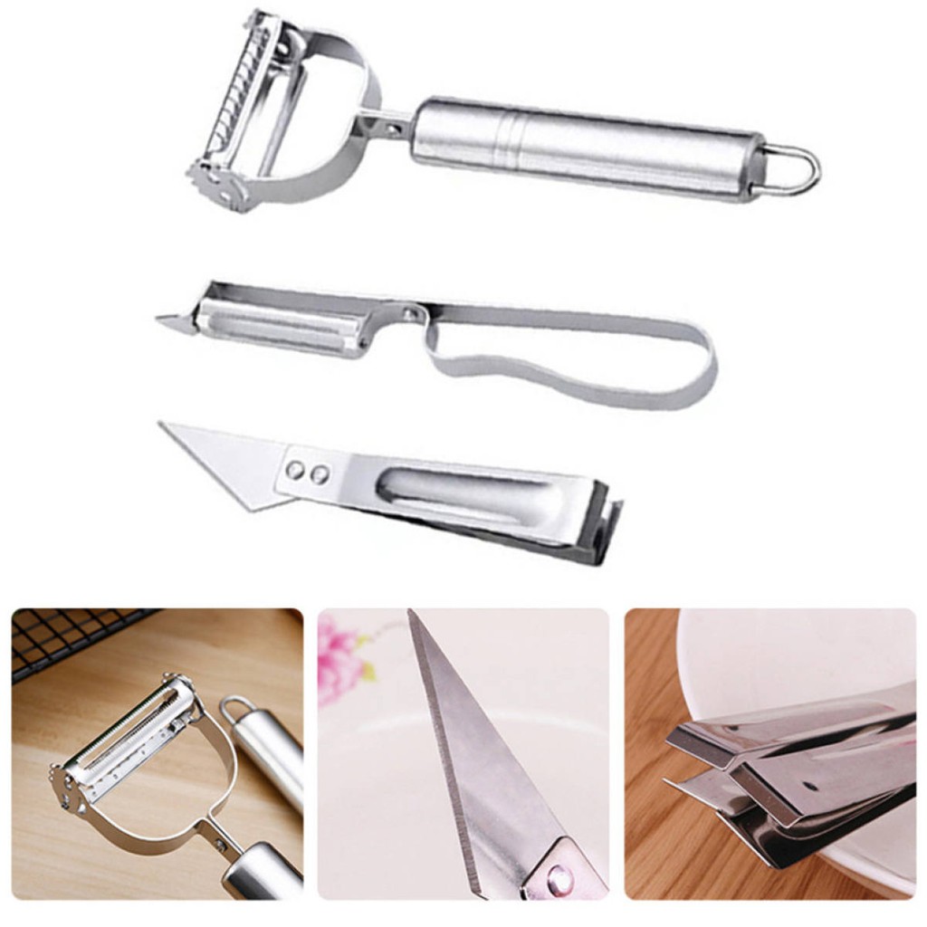 Nhà cửa & Đời sống > Dụng cụ nhà bếp > Bàn nạo, dụng cụ bào, cắt || PVN17806 Bộ 3 dụng cụ gọt vỏ bằng thép không gỉ T2Còn hàng