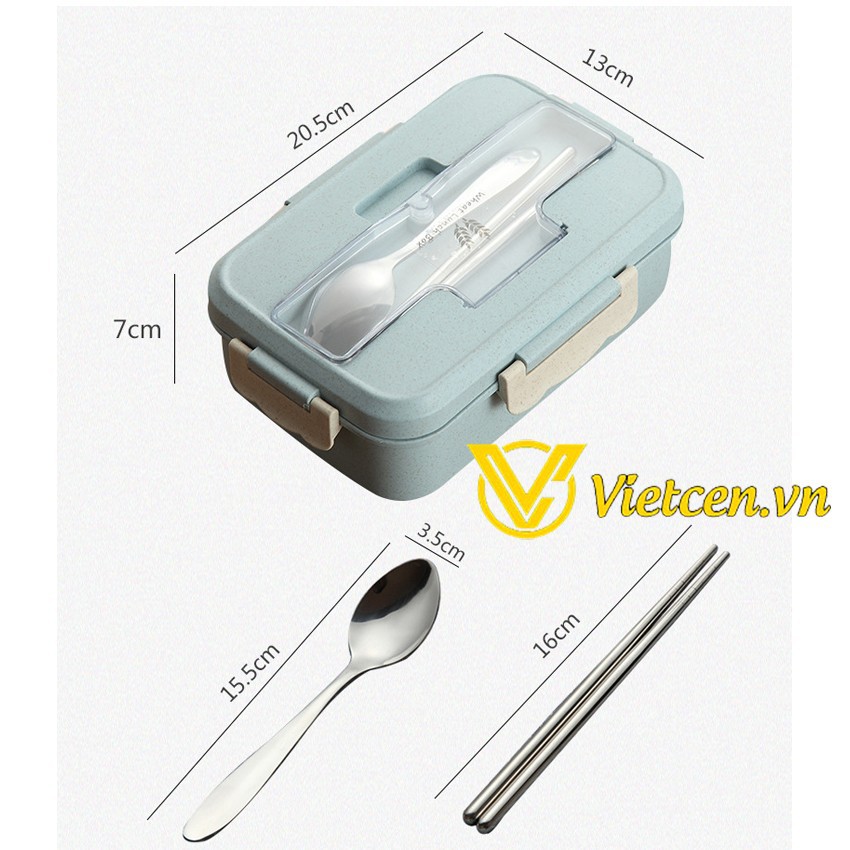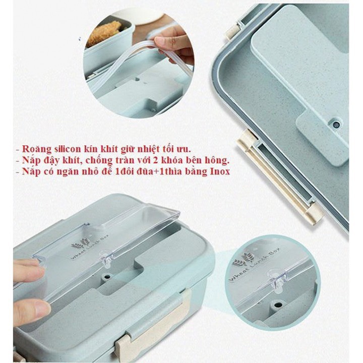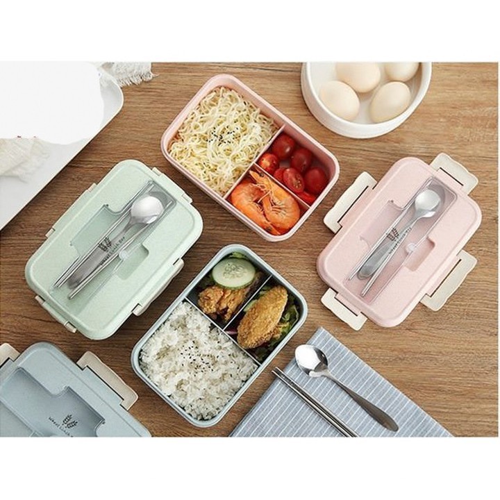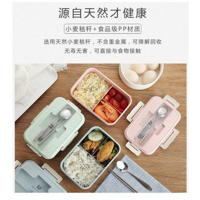 Hộp cơm trưa văn phòng 3 ngăn nhựa lúa mạch kèm đũa thìa inoxMô tả chi tiết: