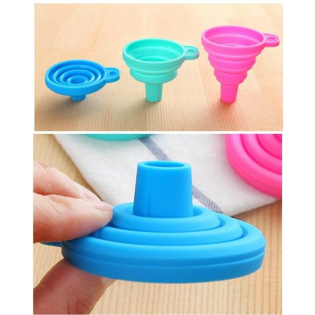 - Phễu gấp gọn sillicon là một vật dụng rất tiện ích cho gia đình, được sử dụng với nhiều mục đích khác nhau: chiết dầu ăn, mắm, tương, mật ong, rượu... ra chai nhỏ thuận tiện cho việc sử dụng hằng ngày; đổ nước cam, nước ép,... vào chai để mang theo đi học đi làm.