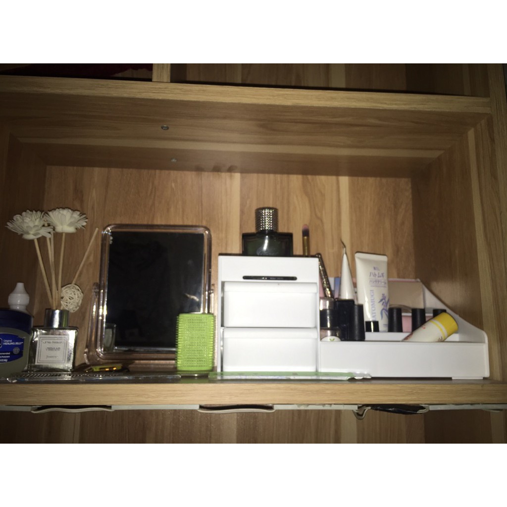 - Kệ để đồ mỹ phẩm đa năng được làm bằng chất liệu nhựa an toàn, được thiết kế hợp lý với 3 tầng, 2 ngăn . Hộp có thêm ngăn kéo, để được nhiều đồ tiện dụng.