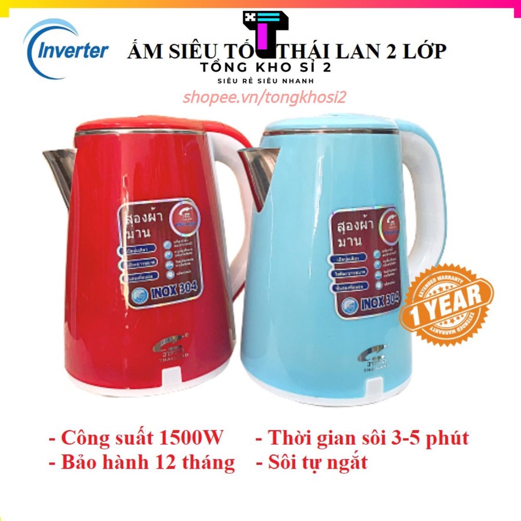 - Ấm siêu tốc 2 lớp Thái Lan cách điện, cách nhiệt, siêu bền sẽ là lựa chọn lý tưởng cho bạn.