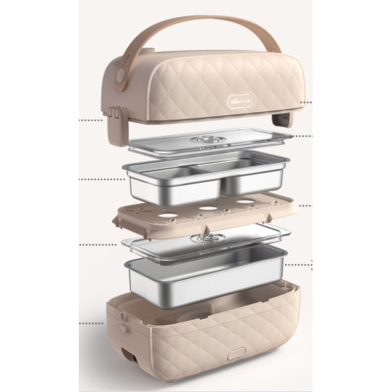 Giới thiệu [Quà tặng 15k] Hộp cơm cắm điện Bear DFH-B12E1, 2 tầng 3 ngăn, nấu chín, hâm nóng và giữ nhiệt cho thức ăn