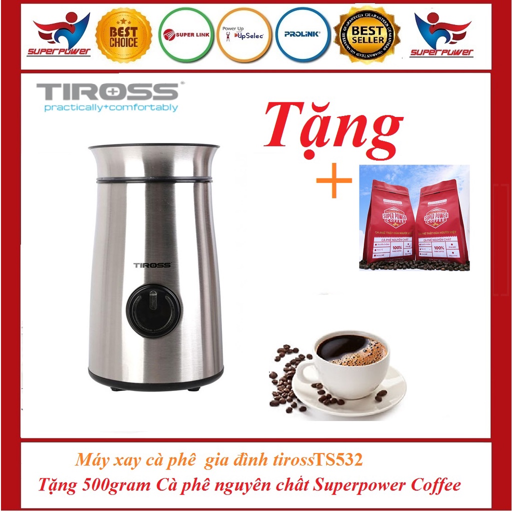 (Quà tặng) Máy xay cà phê tiross TS530,TS531 tặng 500 gram cà phê nguyên chất Superpower
