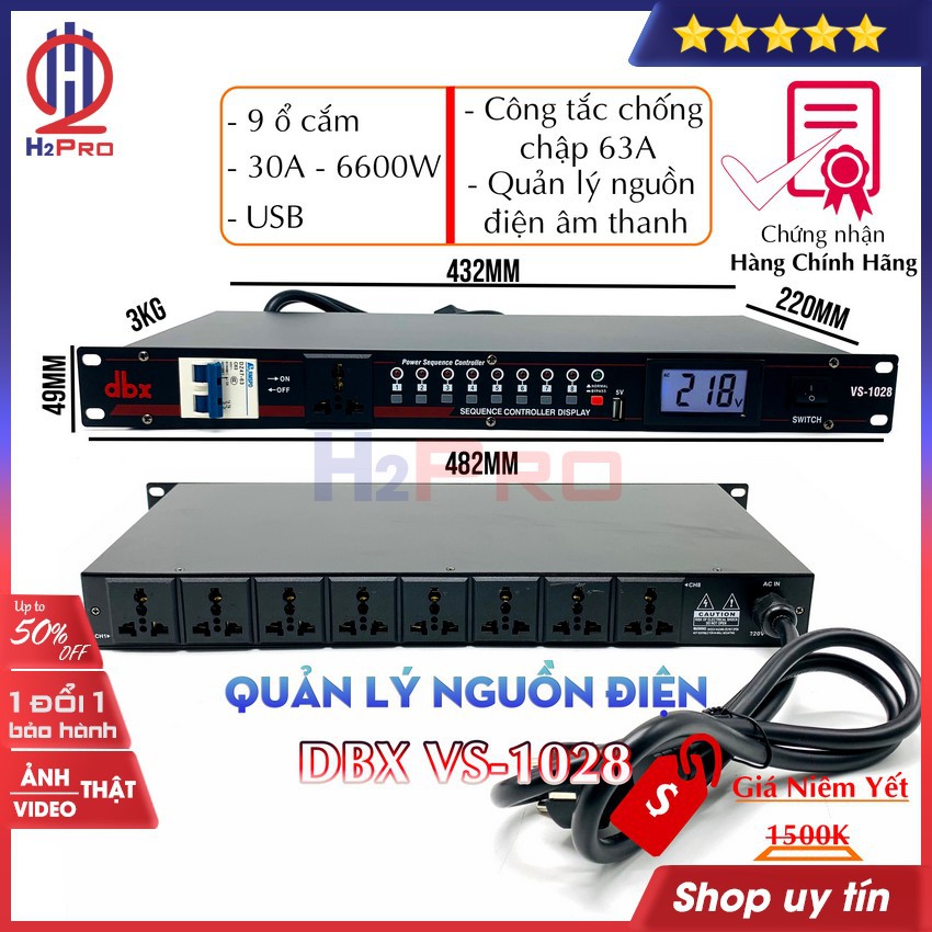 Quản lý nguồn điện DBX VS-1028 H2Pro 9 ổ cắm-30A-6600W-USB-công tắc chống chập 63A, bộ quản lý điện cao cấp-hàng hãng