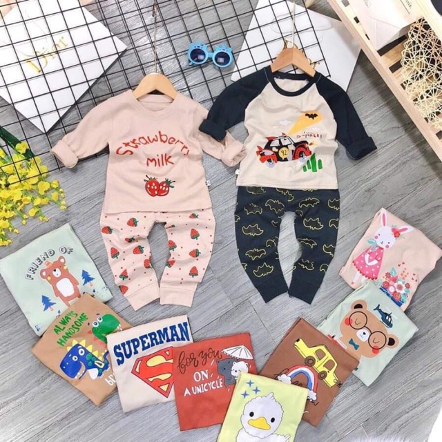 Lo đầu tiên bộ coton len hình cho bé trai bé gái nhà e về hàng nhé