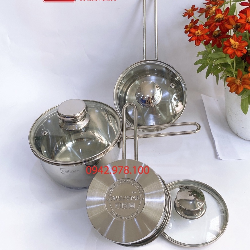 Nhà cửa & Đời sống > Dụng cụ nhà bếp > Nồi || Quánh bột cháo 3 đáy inox 430 Fivestar Standard nắp kính dùng bếp từ (14cm)Còn hàng