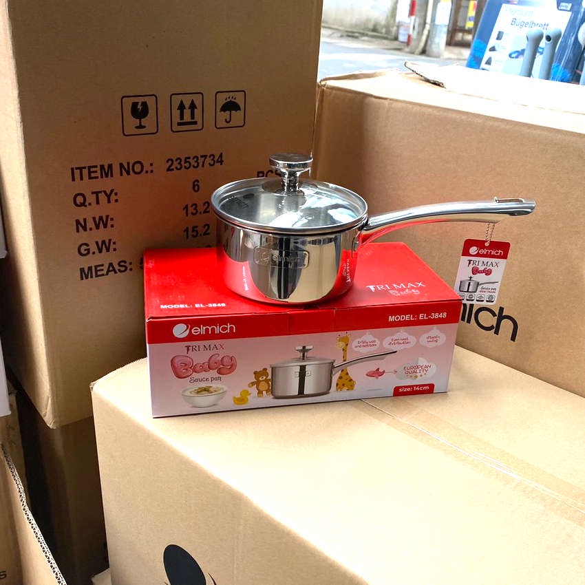 Nhà cửa & Đời sống > Dụng cụ nhà bếp > Nồi || Quánh inox 304 thân đúc đáy liền Elmich Trimax Baby EL-3848 đường kính 14cm vung kính đáy từ bảo hành 12 thángCòn hàng