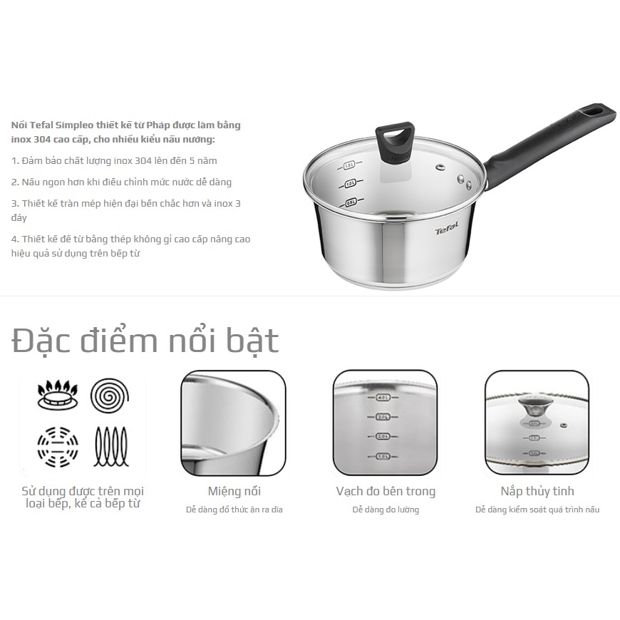 Nồi Tefal Simpleo thiết kế từ Pháp được làm bằng inox 304 cao cấp, cho nhiều kiểu nấu nướng:1. Đảm bảo chất lượng inox 304 lên đến 5 năm