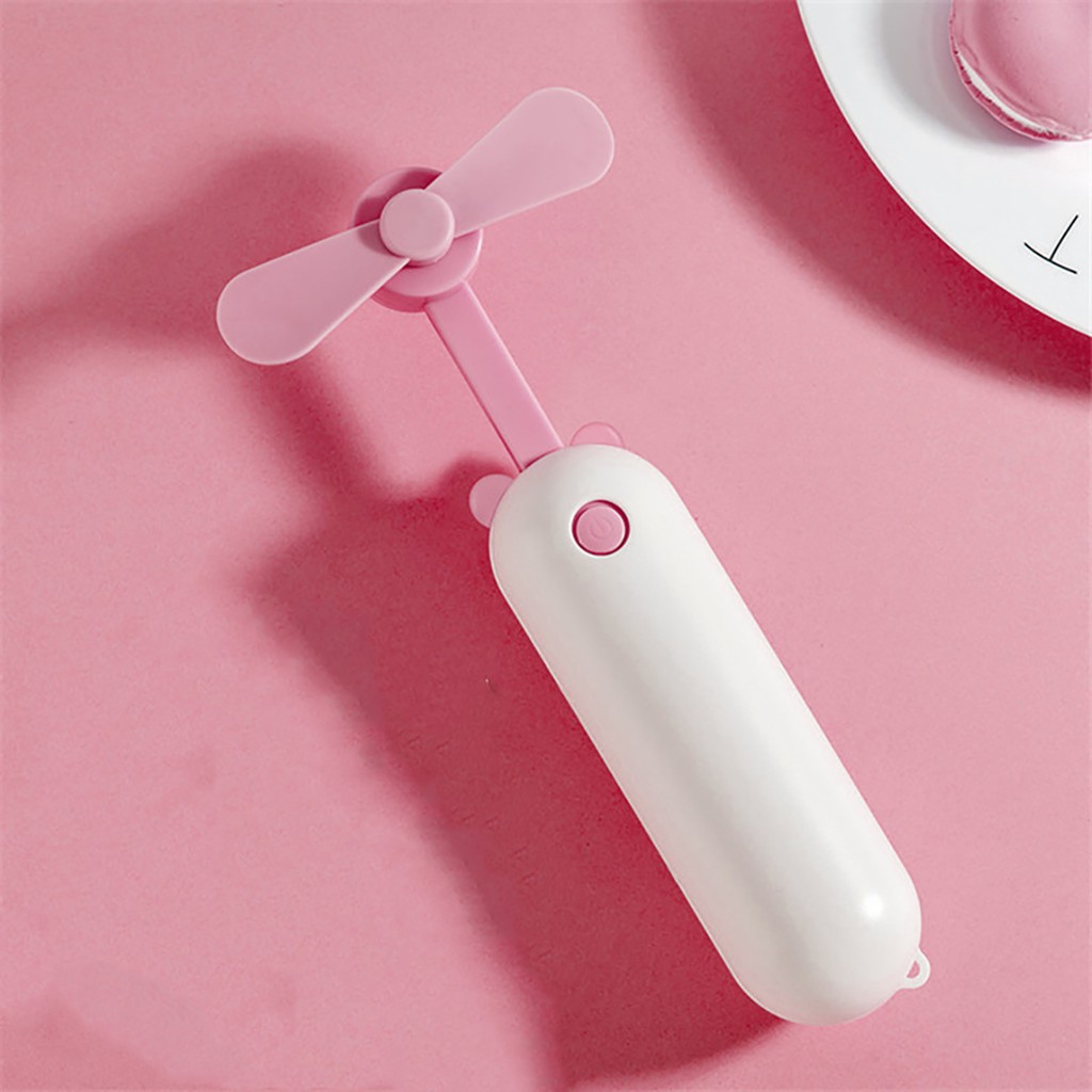 Quạt cầm tay mini chong chóng gấp gọn bỏ túi 2 tốc độ gió tai thú dễ thương tặng kèm dây sạc usb quà tặng mùa hè