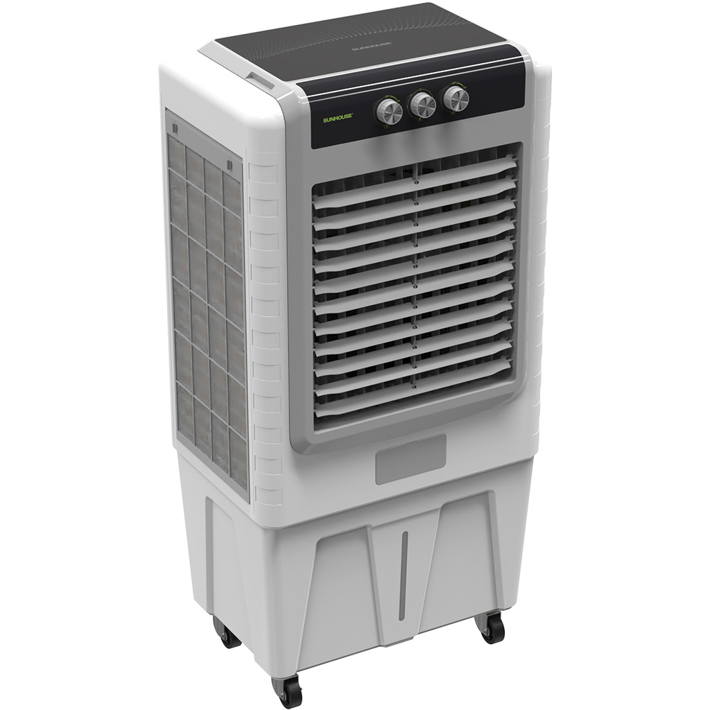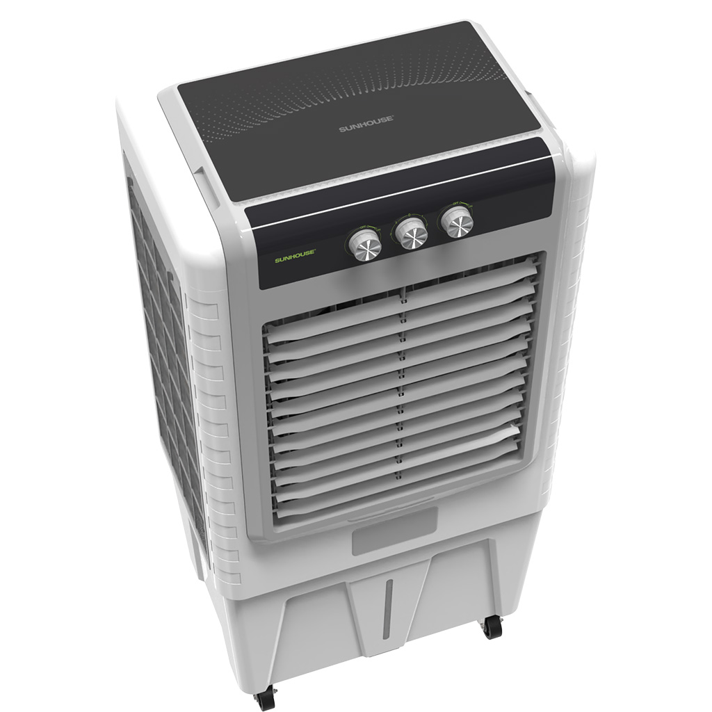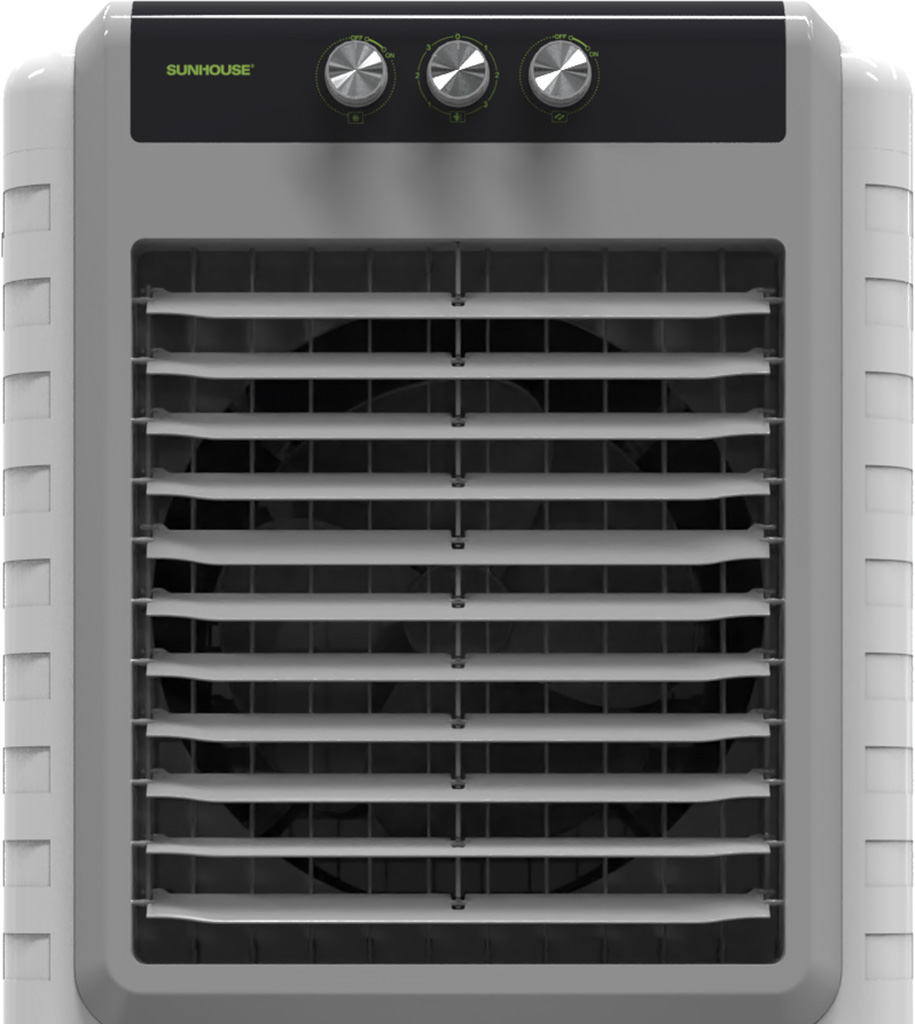 Quạt điều hòa thiết kế gọn với bánh xe tiện di chuyển Công suất 200W làm mát hiệu quả không gian rộng khoảng 65m² Dung tích bình chứa 70 lít cho thời gian sử dụng lâu dài Quạt điều hoà Sunhouse điều khiển bằng nút xoay dễ sử dụng Động cơ AC bằng đồng nguyên chất hoạt động bền bỉ Lưu lượng gió lớn giúp làm mát khắp không gian hiệu quả