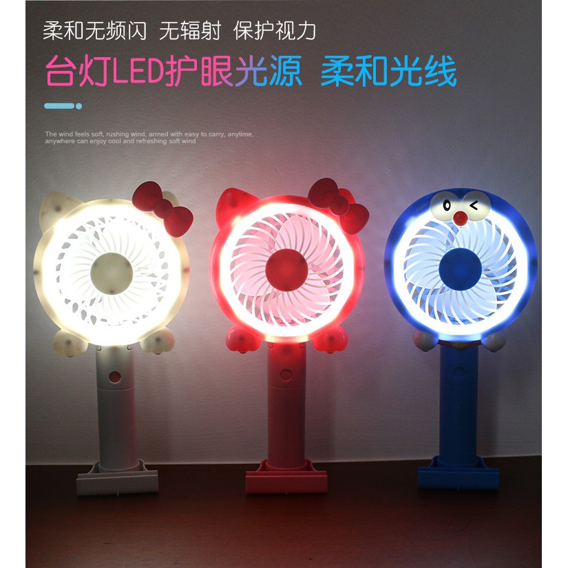 QUẠT TÍCH ĐIỆN CẦM TAY - KITTY VÀ ĐOREMON - CÓ ĐÈN LED ĐỂ BÀNSản phẩm có thể để bàn, gấp gọn và có chân đế để điên thoại