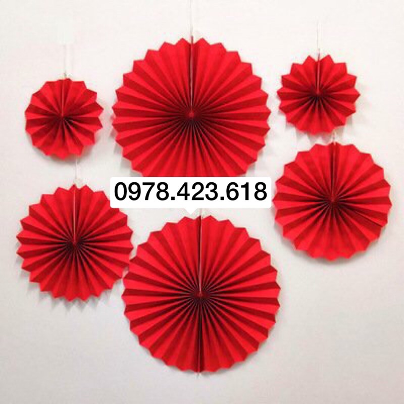 Giới thiệu Quạt giấy Đỏ trang trí Tết - Party Fan set 6 quạt giấy đỏ