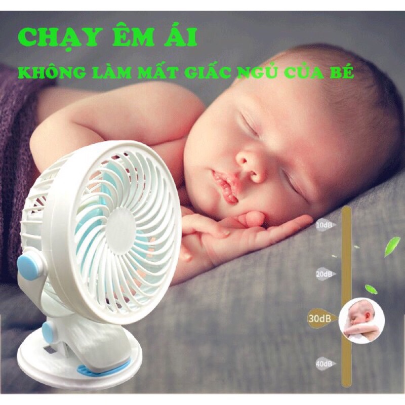 Quạt kẹp xe đẩy cho bé,Kẹp Bàn gió siêu mát 3 cấp độ-Xoay 720 độ-Dùng pin 2000mAh-Usb