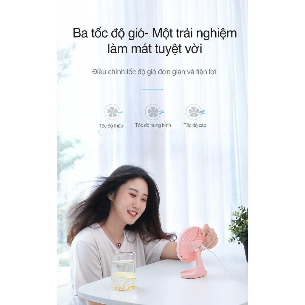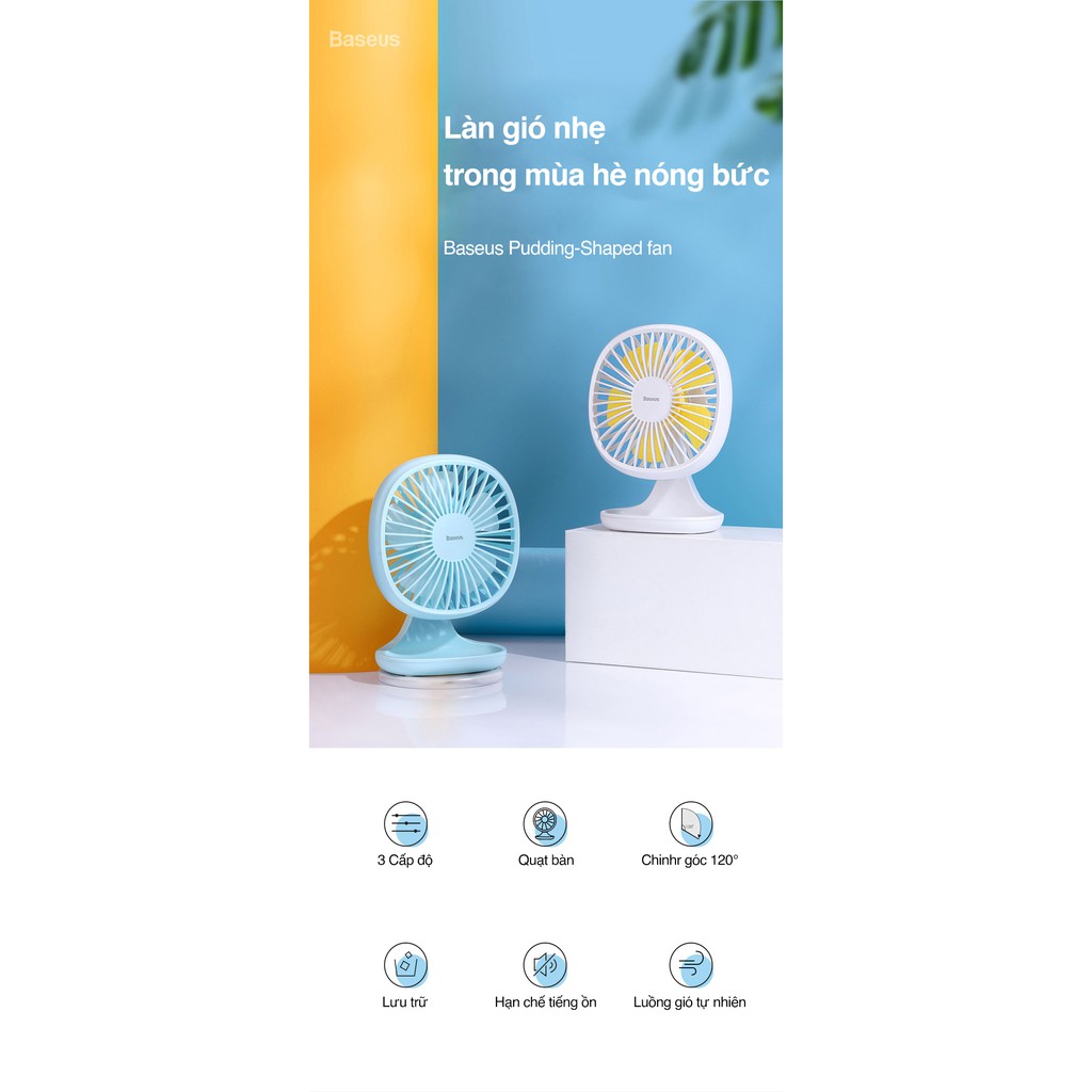 - Quạt mini để bàn Baseus Baseus Pudding-Shaped Fan có sức gió mạnh vừa và tự nhiên nhờ cơ cấu cánh quạt và bộ khung bảo vệ có thiết kế thông minh có tác dụng khuếch tán luồn gió, cho cảm giác tự nhiên và thoải mái hơn khi sử dụng.
