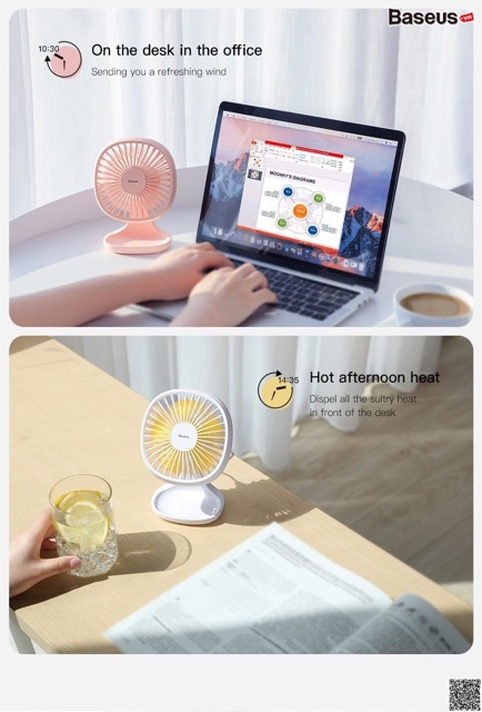 -Quạt mini để bàn Baseus Pudding -Shaped Fan được làm từ chất liệu nhựa cao cáp APS+PP,siêu miện thân thiện với làn da cho bạn cảm giác mềm mại và thoải mái .