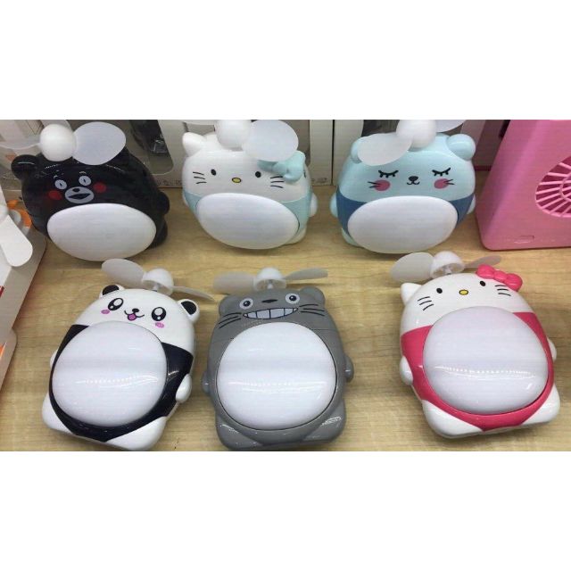 Quạt mini dùng pin siêu mát cầm tay có đèn dễ thương nhiều mẫuHellokitty, Totoro, Panda, ...