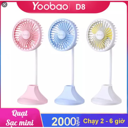 Quạt sạc mini USB 2000mAh YOOBAO D8 đa chức năng, đèn học, hôp đựng bút, khay đặt điện thoại, thân mềm xoay 360*