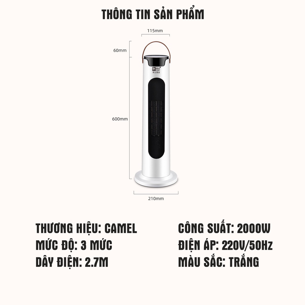 Giới thiệu Quạt sưởi chính hãng CAMEL dáng đứng, góc xoay 120 độ tỏa nhiệt, công suất 2000W - BH 12 tháng