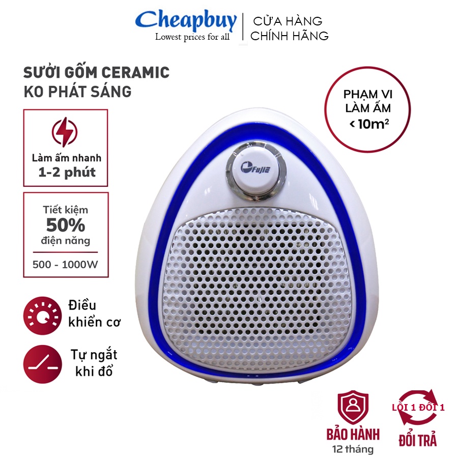 Quạt sưởi gốm Ceramic mini CN Nhât Bản FUJIE CH-202 Blue, tự ngắt,không phát sáng,bảo hành 12 tháng