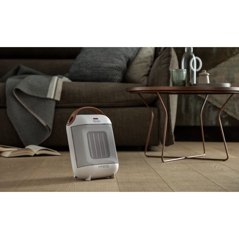 Quạt sưởi gốm DELONGHI HFX30C18Quạt sở hữu một phong cách thiết kế tối giản, đẹp mắt với phong cách theo hơi hướng tân cổ điển, một phong cách thiết đẹp mắt và rất cao cấp. Được thiết kế tại Ý DeLonghi đã biến hóa chiếc quạt sưởi trở thành một sản phẩm nội thất trang trí. Tay cầm được thiết kế lịch thiệp với chi tiết được bọc da dù bạn có đặt chiếc quạt ở bất cứ địa điểm nào trong căn nhà chiếc quạt cũng dễ dàng hòa quyện đẹp mắt.