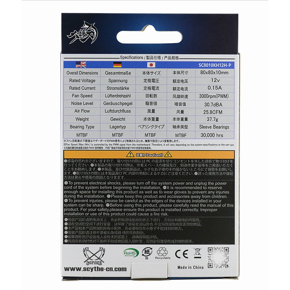 Máy tính & Laptop > Linh Kiện Máy Tính > Quạt và Tản Nhiệt || Quạt tản nhiệt fancase 8cm Scythe KAZE-HACHI 80mm - Slim fan mỏng 10mm, tốc 3000rpm, điều tốc PWM, hiệu năng caoCòn hàng