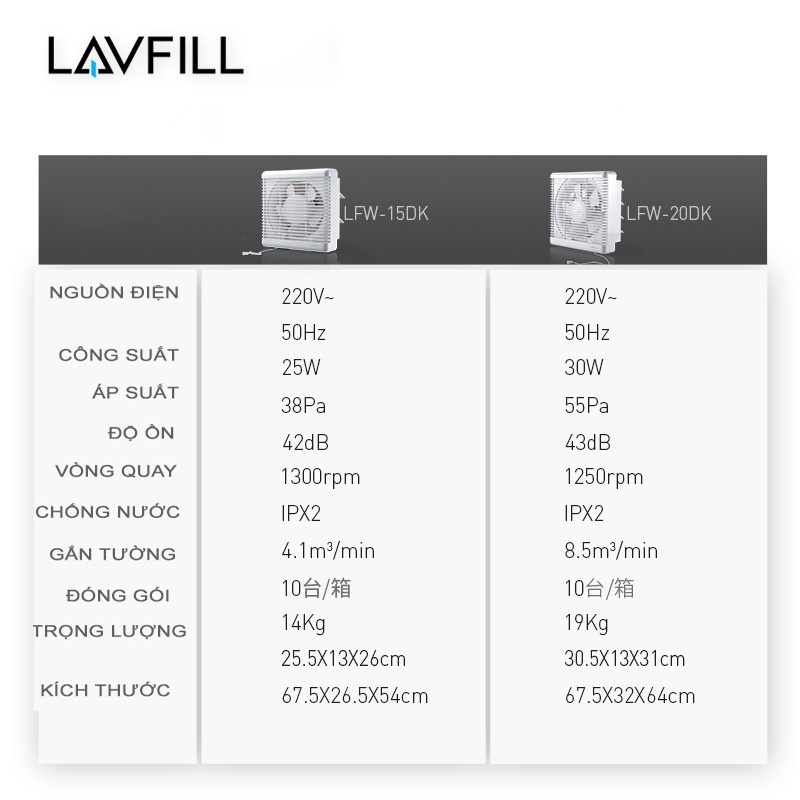 ********** QUẠT THÔNG GIÓ CAO CẤP LAVFILL **********Nhắc tới LAVFILL là nhắc tới dòng quạt thông gió hút mùi rất tốt, độ ồn nhỏ, mâu mã đa dạng.