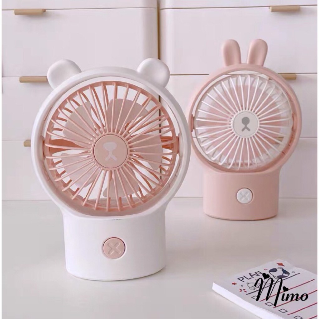Quạt tích điện cầm tay 2 tốc độ gió mạnh có thể để bàn tiện lợi hình tai gấu, thỏ cực đáng yêu giúp làm mát cho mùa hè