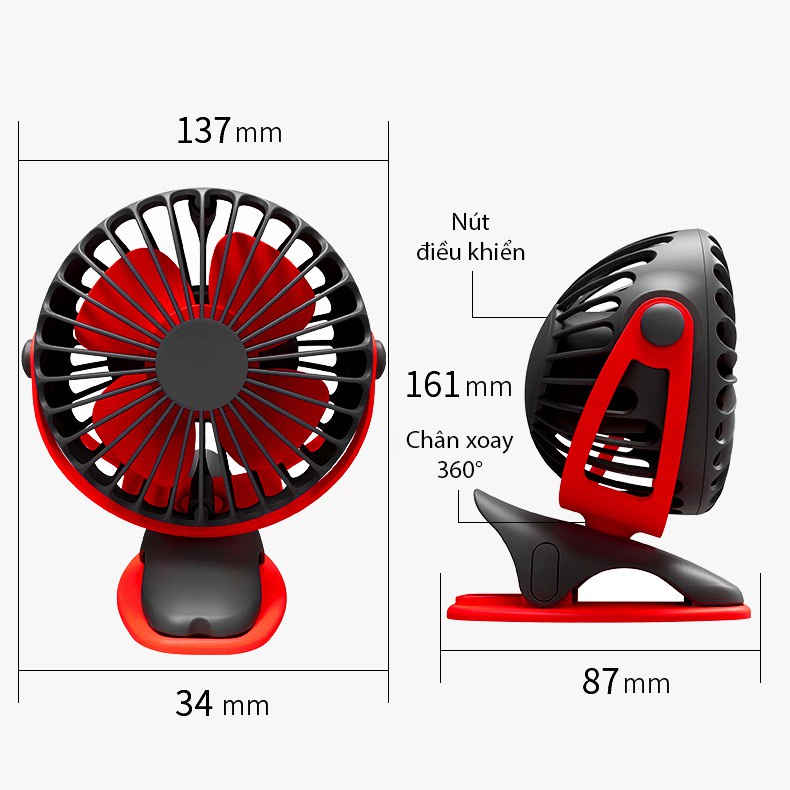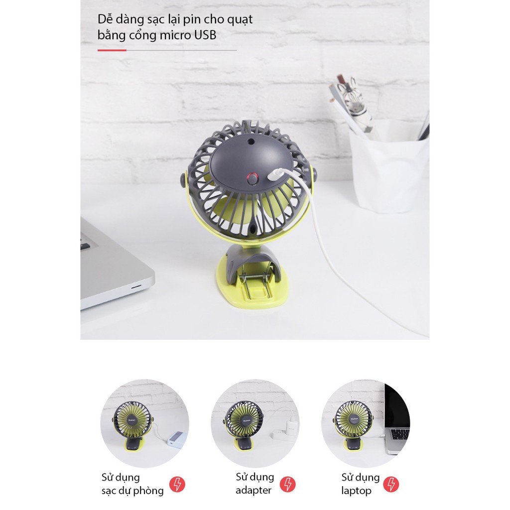 Quạt tích điện mini chân kẹp xe đẩy đa năng Yoobao 6400mAh
