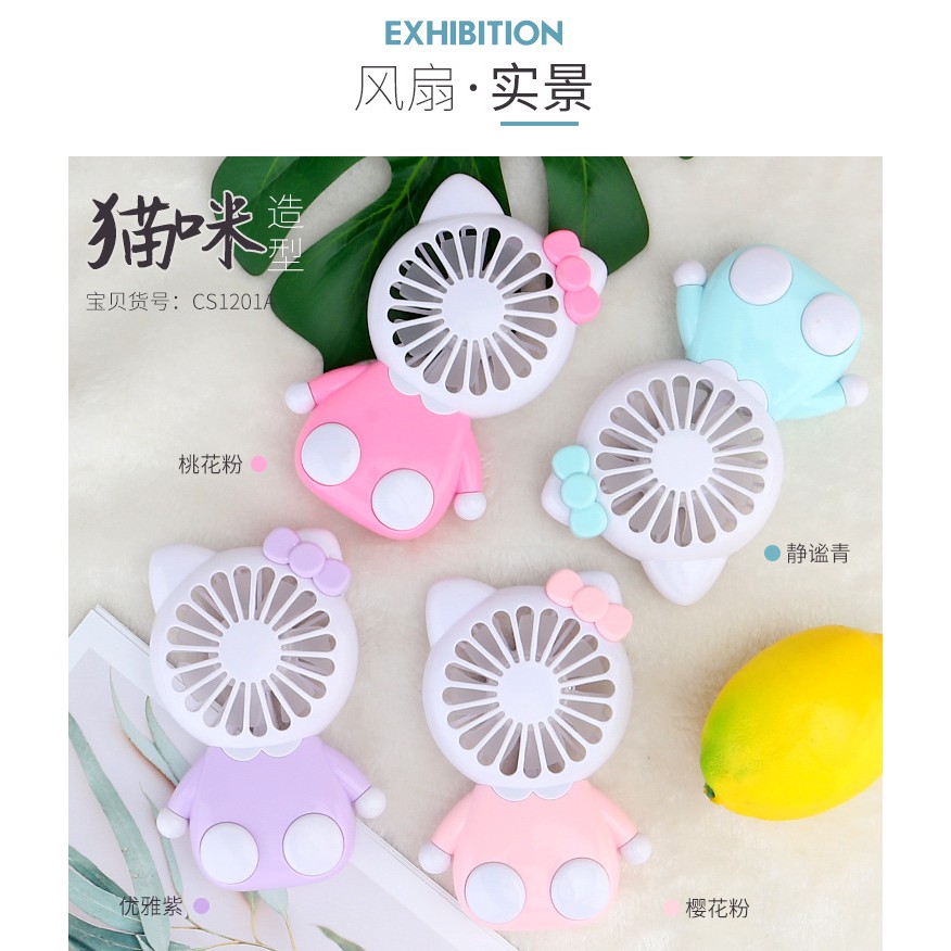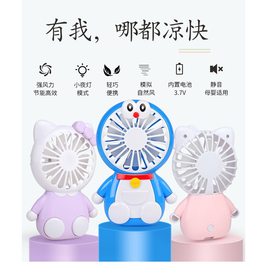 Giới thiệu Quạt Tích Điện Mini Hình Thú Có Dây Đeo Và Đèn Đổi Màu