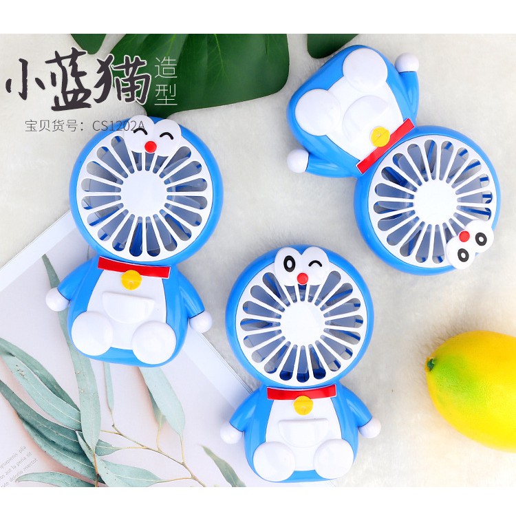 Quạt Tích Điện Mini Hình Thú Có Dây Đeo Và Đèn Đổi Màu