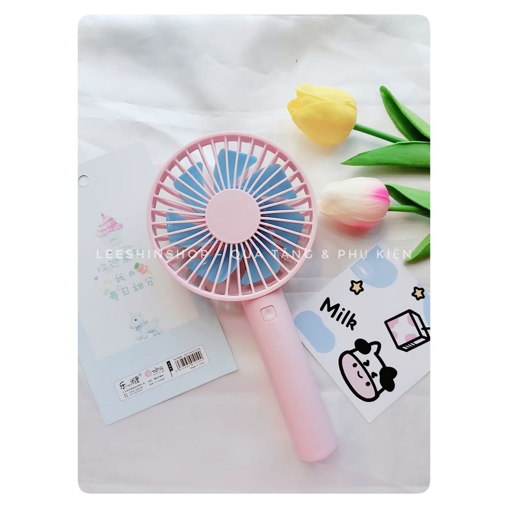 Quạt tích điện mini, quạt mini cầm tay cute đầy đủ phụ kiện ( đế, dây sạc) giá rẻ tiện dụng