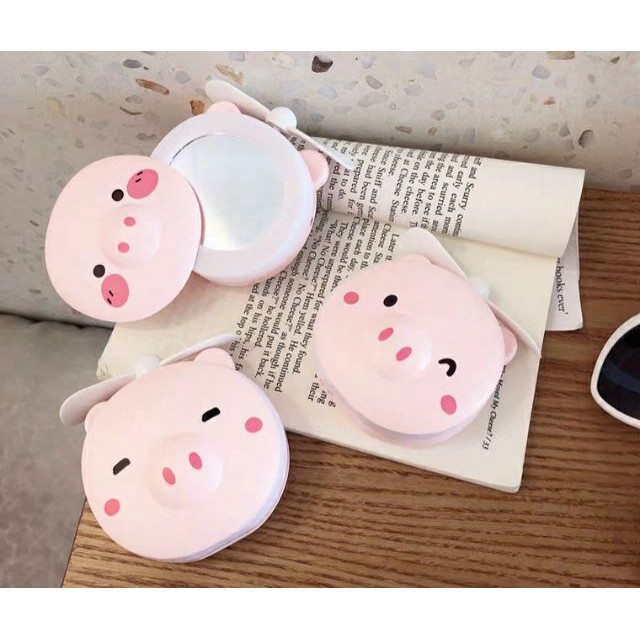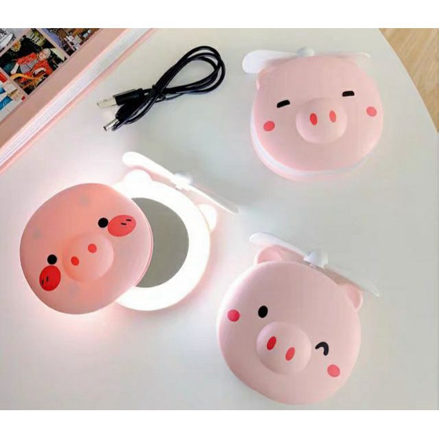 Quạt Usb FreeShip Quạt Mini Hình Con Lợn Có Gương Đèn (kèm sạc)