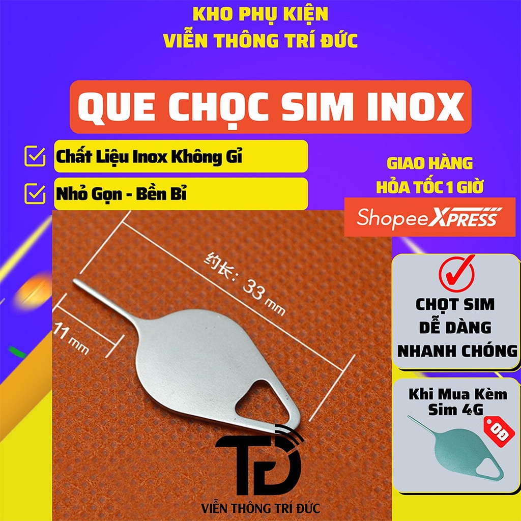 Que Chọc Sim Inox Không Gỉ, Que Lấy Sim 4G Viettel, VinaPhone, MobiFone, Sim 4G Phát Wifi, Sim lên mạng Cả Năm Giá RẻCảnh báo: Bạn không nên dùng các vật dùng dễ gãy như tăm để chọc SIM vì rất có thể que bị gãy và mắc kẹt khiến việc lấy SIM ra khó khăn hoặc thậm chí gây hư hại thiết bị.